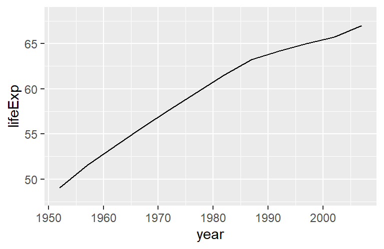 e.g., a line geometry (geom_line()) interprets data on way and creates lines on your figure while a boxplot geometry (geom_boxplot()) interprets the data another way