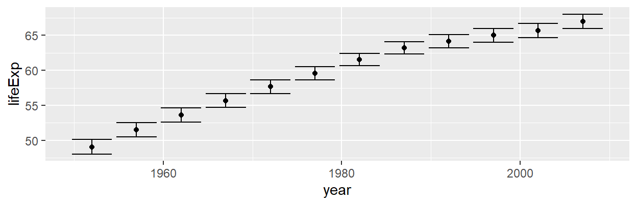 However, sometimes you do need to manipulate your data to get the correct aesthetic mapping for a geom (e.g., creating errobars)